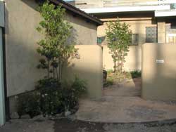高齢の夫婦にとって歩きにくくなった段差のある玄関アプローチと、手入れが大変な前庭をつくりかえました。アプローチは玉砂利を入れて滑りにくいスロープとし、あとはバリアフリーでローメンテナンスのガーデンとしました。スロープ脇の植え込み以外は、雑草対策として土モルタルのタタキで覆いました。四季の花が咲く山野草のロックガーデンには、主木として株立ちコハウチワカエデがあり、紅葉を楽しめます。